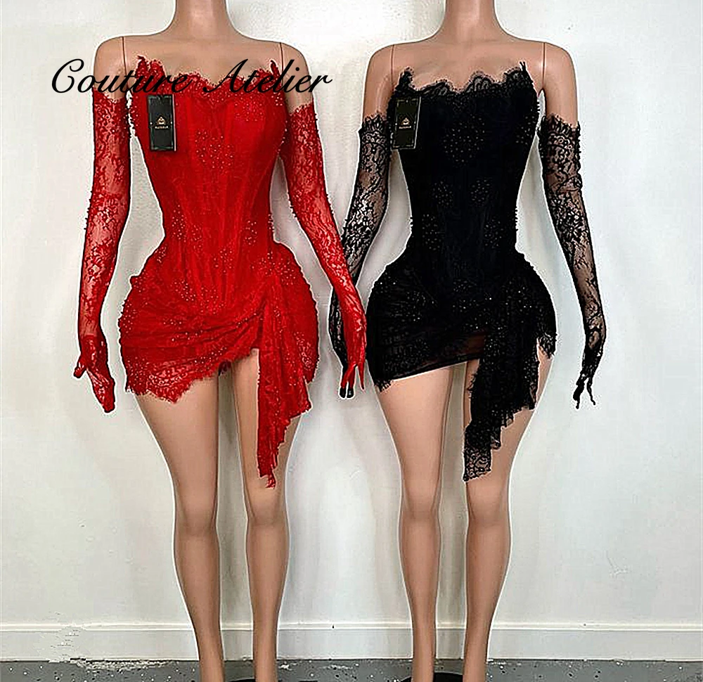🌟 Cute Red Black Lace Prom Dress with Gloves – The Perfect Homecoming Gown