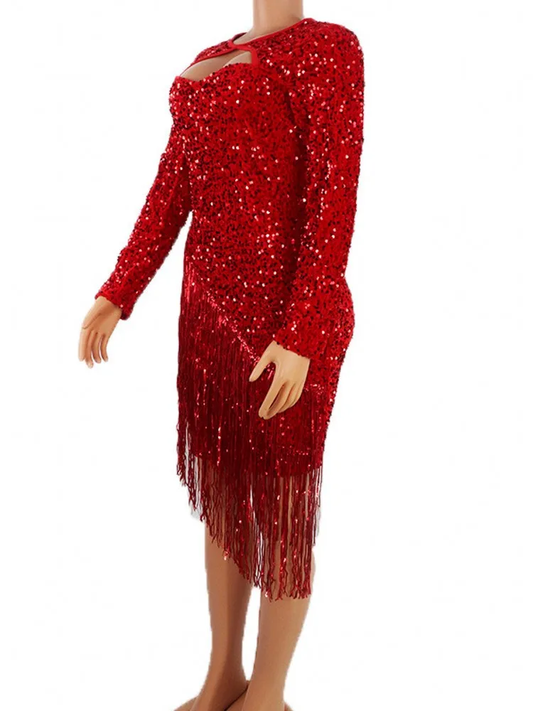 Be the first to review “Fashion Red Sequin Bodycon Dress Long Sleeve Party Evening Gown”