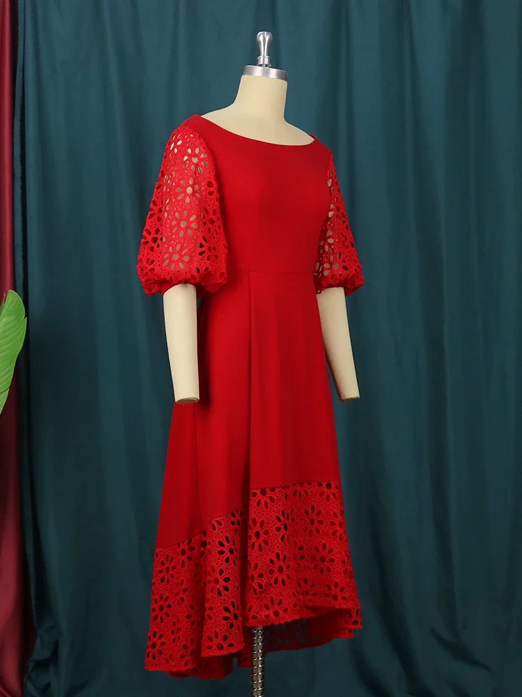 ✔ Material Composition: The dress is crafted from a combination of cotton, polyester, and lace, providing a soft and breathable feel while ensuring durability and elegance. The synthetic fiber blend offers just the right amount of stretch to ensure a comfortable fit.