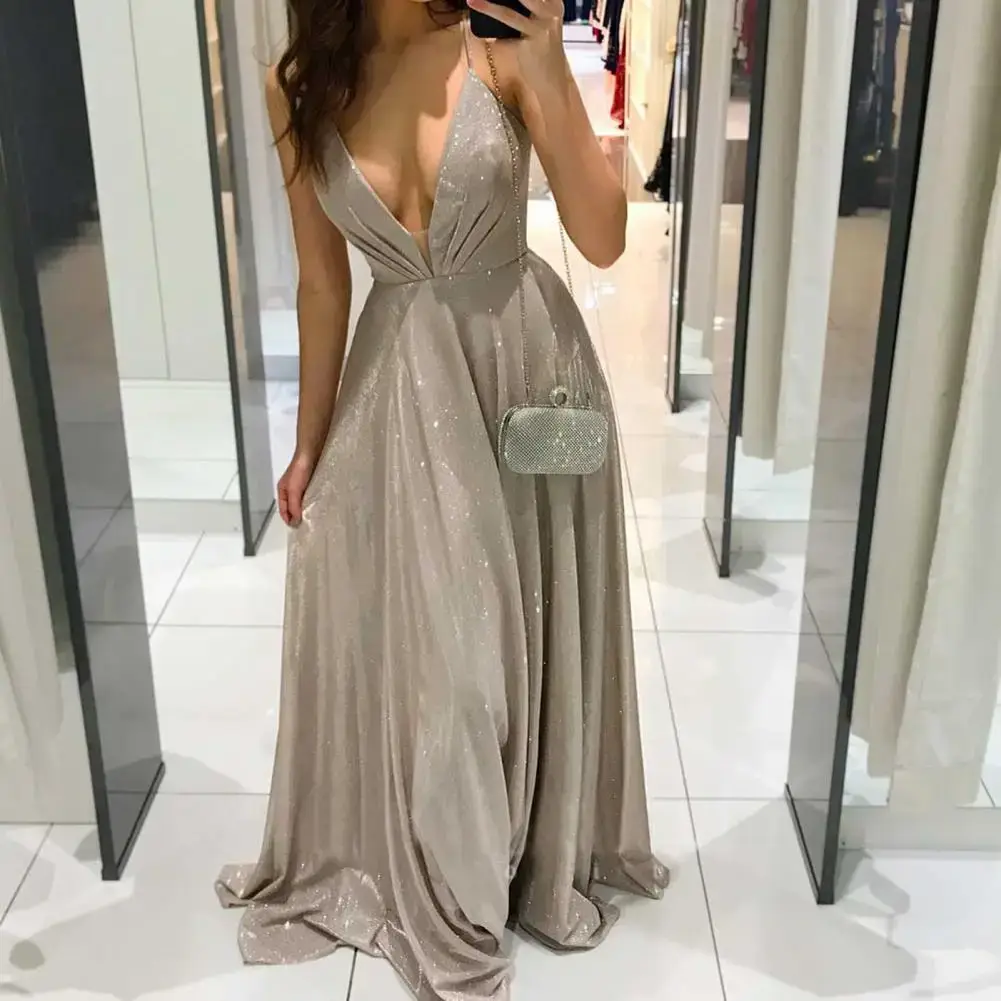 ✔ The dress features a daring low-cut V-neckline combined with an alluring backless design, elevating the dress’s sexy appeal while maintaining tasteful elegance. ✔ Adjustable spaghetti straps allow for a customized fit, ensuring comfort and stability throughout your night.