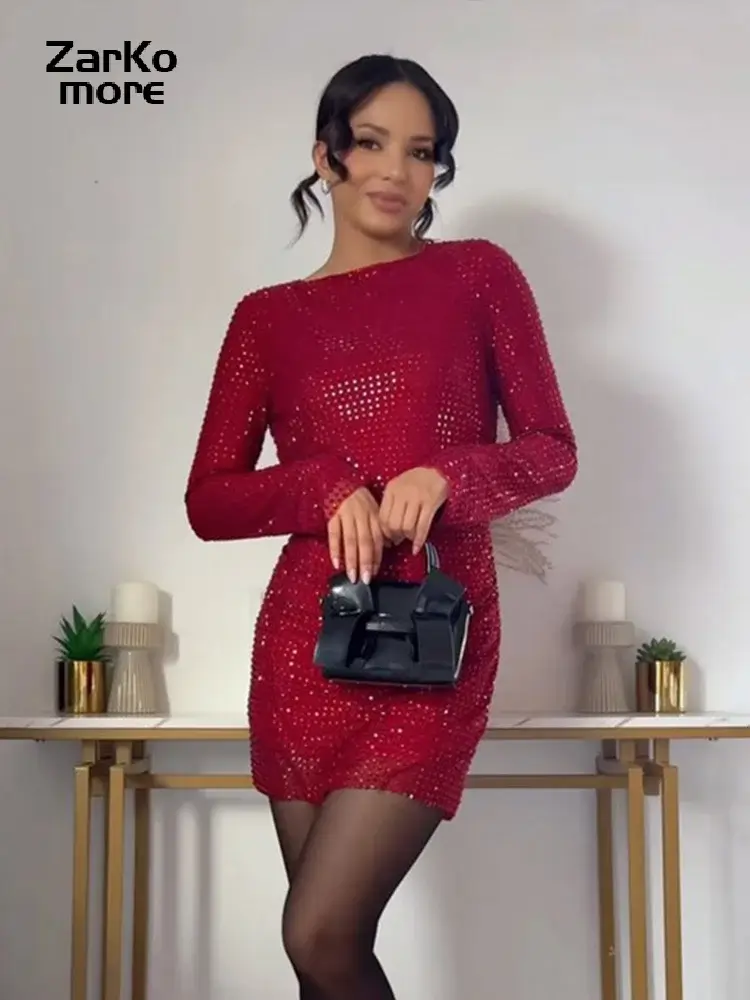 Red Sequin Backless Mini Dress Sexy Party Clubwear Outfit 2025
