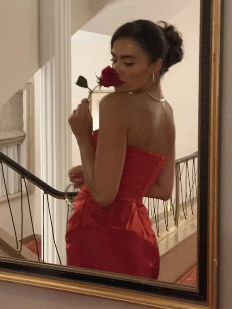 To keep the Sexy Red Satin Strapless Backless Corset Dress looking its best, we recommend dry cleaning only to preserve the rich color and smooth texture of the satin fabric. Store the dress in a cool, dry place to maintain its shape and quality.