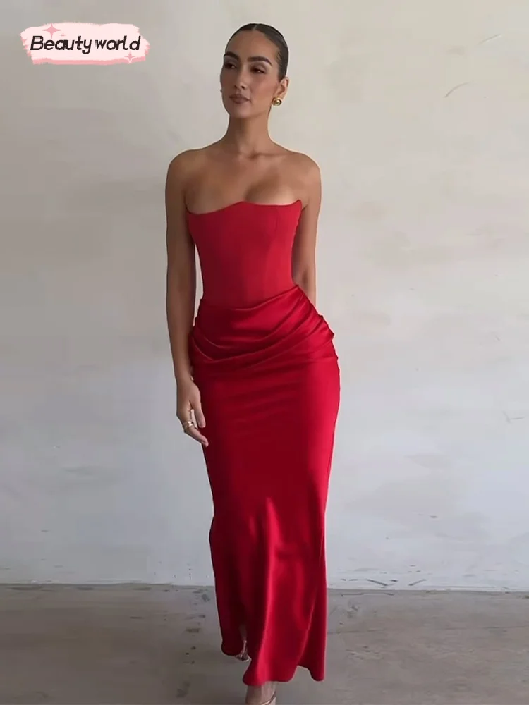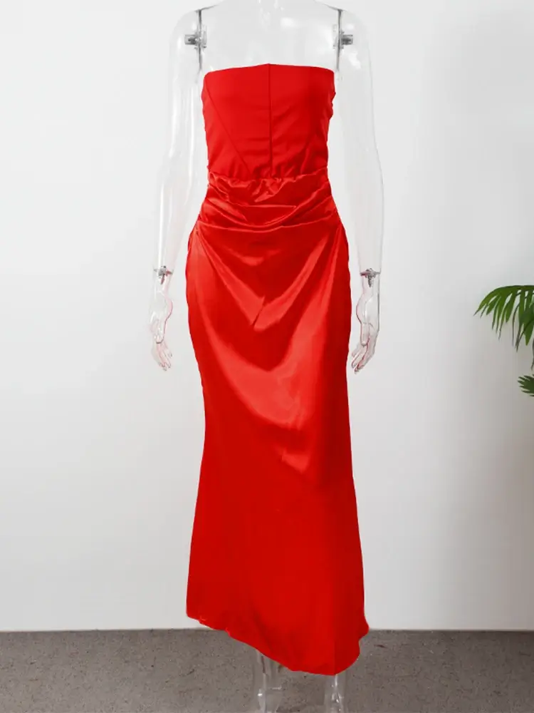 Sexy Red Satin Strapless Backless Corset Dress: A Stunning Choice for Evening Parties