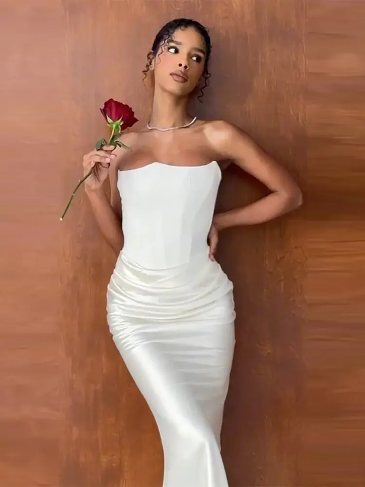 Neckline: The strapless design adds a modern and sophisticated edge to the dress, showcasing your collarbones and shoulders for a graceful and elegant look. It’s perfect for evening parties or special events where you want to make an impression.