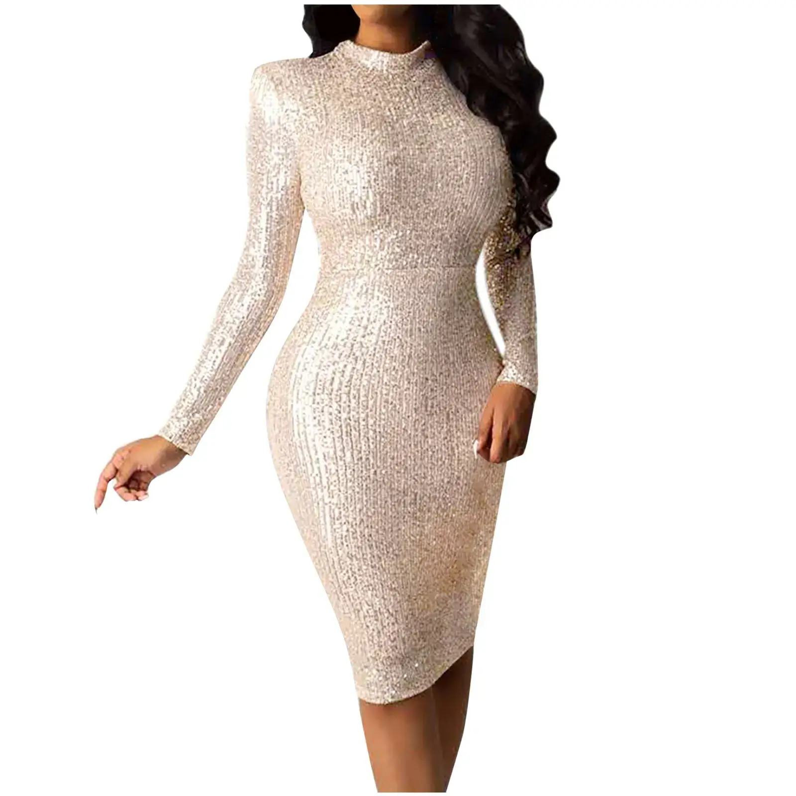 • Stunning Design: The dress features a V-neck, long sleeves, and a bodycon silhouette that accentuates your natural curves. The sequin embellishments add a touch of sparkle, making it perfect for cocktail parties or formal events.